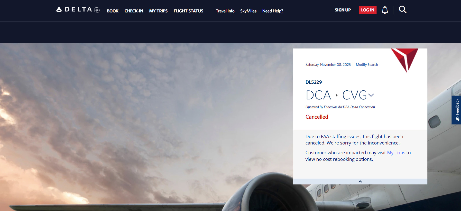 とりあえず私達の乗る便は飛ぶようで、デルタから「チェックイン開始」の知らせが来る