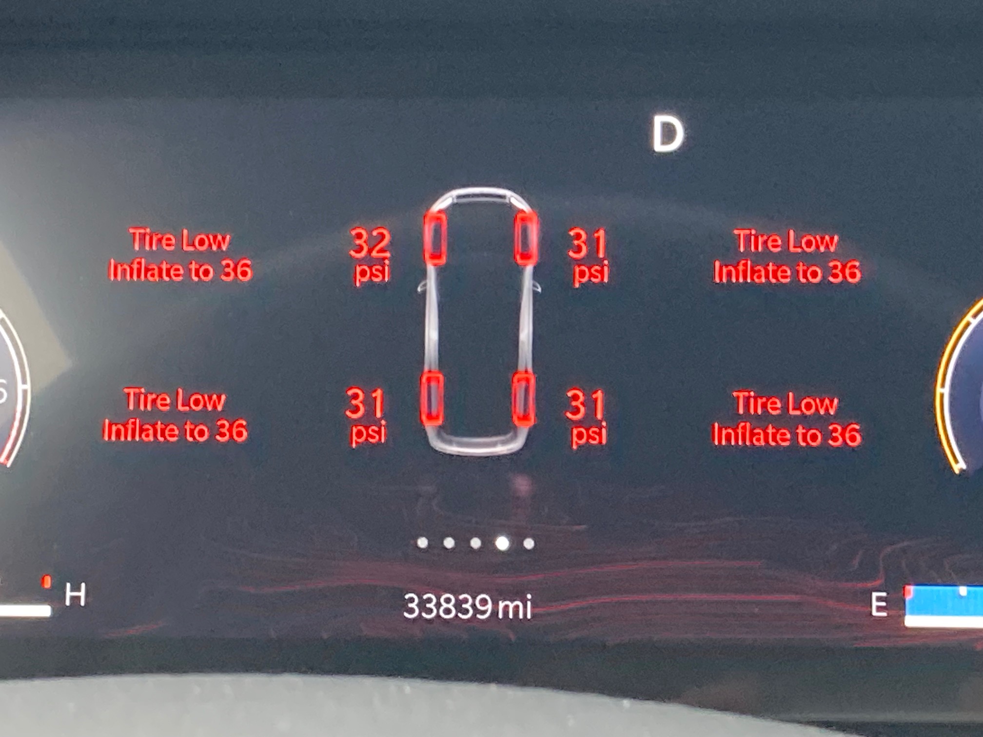 出発しようとしたら ⇩ 朝-3℃で寒かったからかタイヤの空気圧が低いと警告の表示が出た