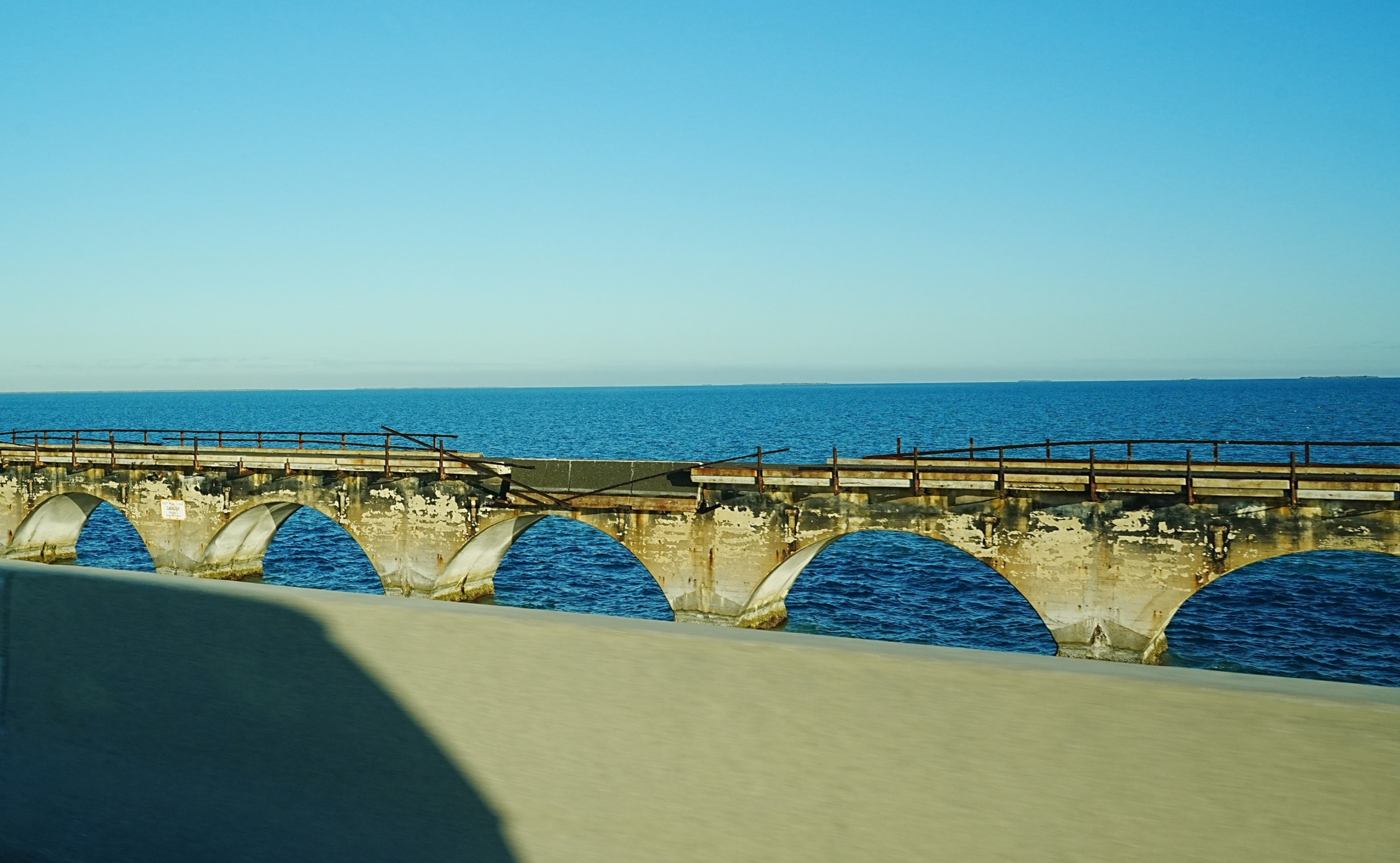 1912年完成の歴史的建造物の鉄道橋 ⇩ 長年の塩害とハリケーン被害で老朽化がすごい
