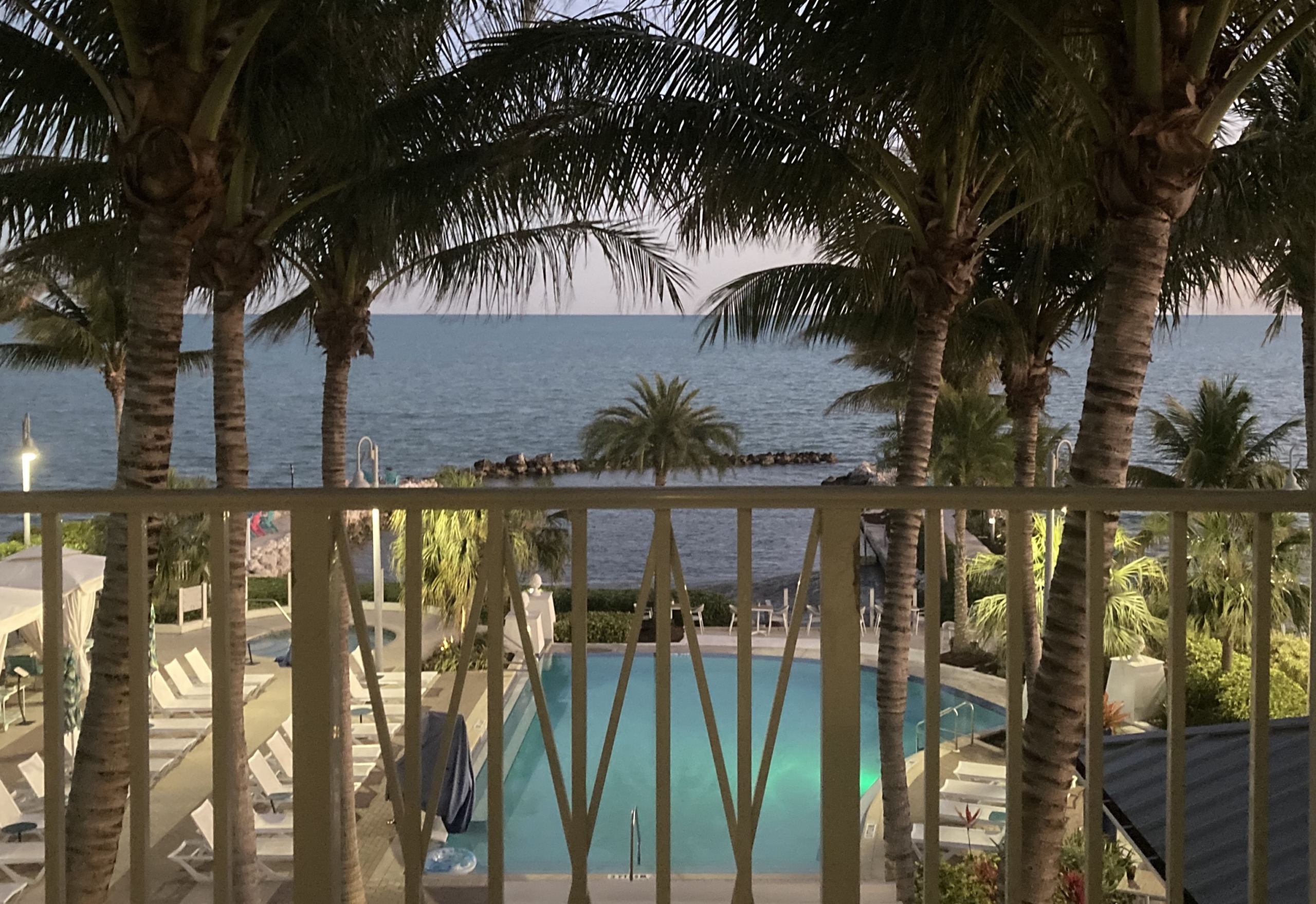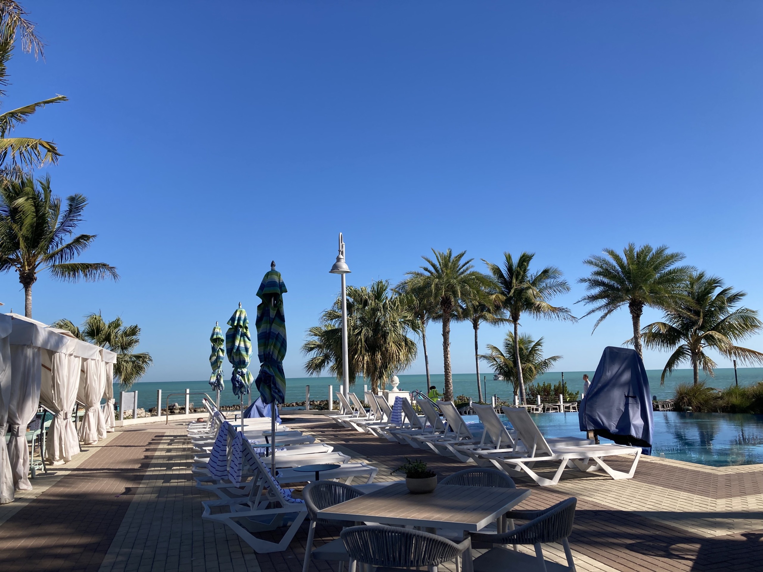 ホテルのプールサイドを散歩 ⇩ 朝からプールに入っている人がいた
