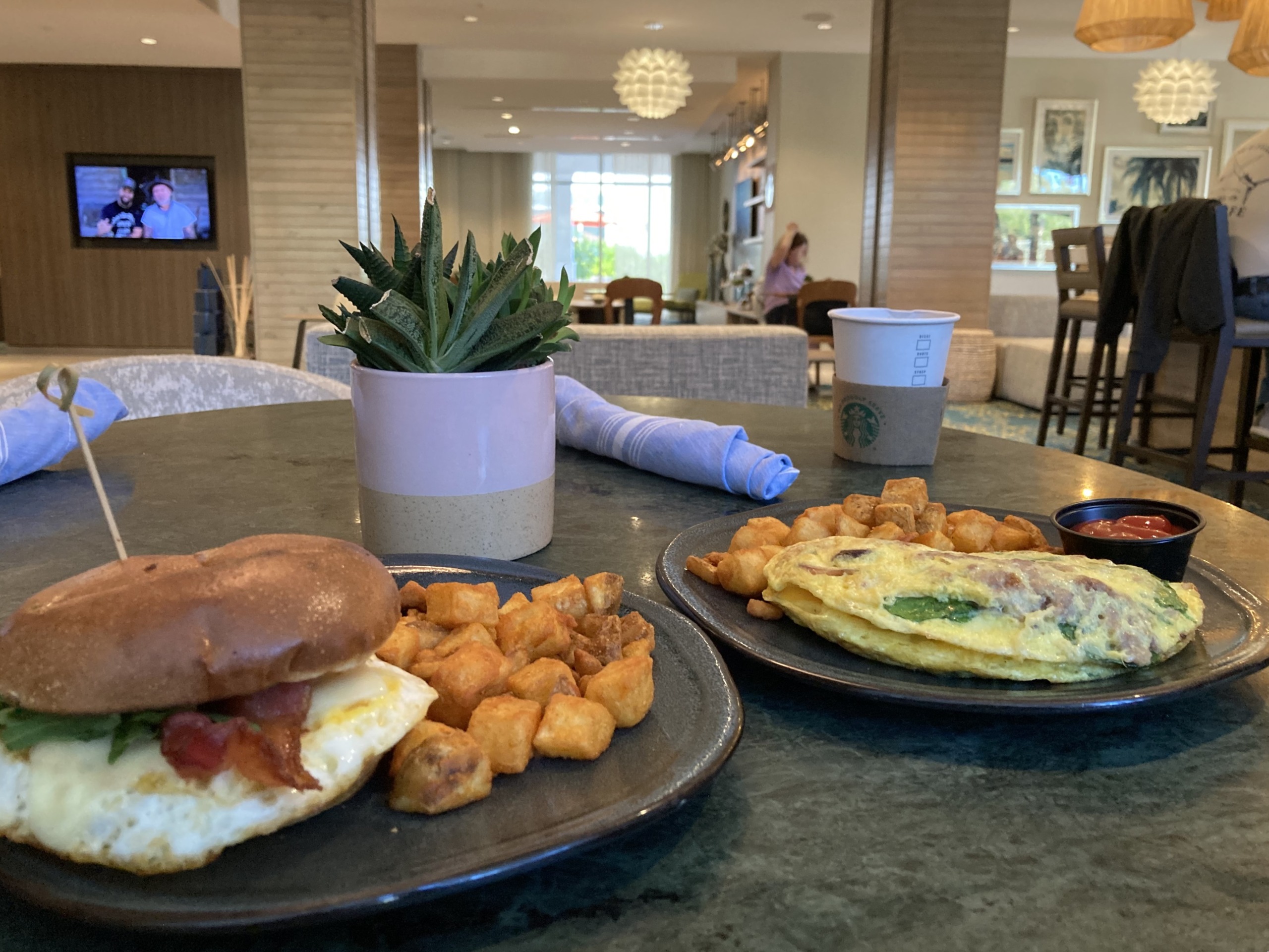ホテルにあるスタバで朝ご飯 ⇩ 初めてスタバの朝ご飯