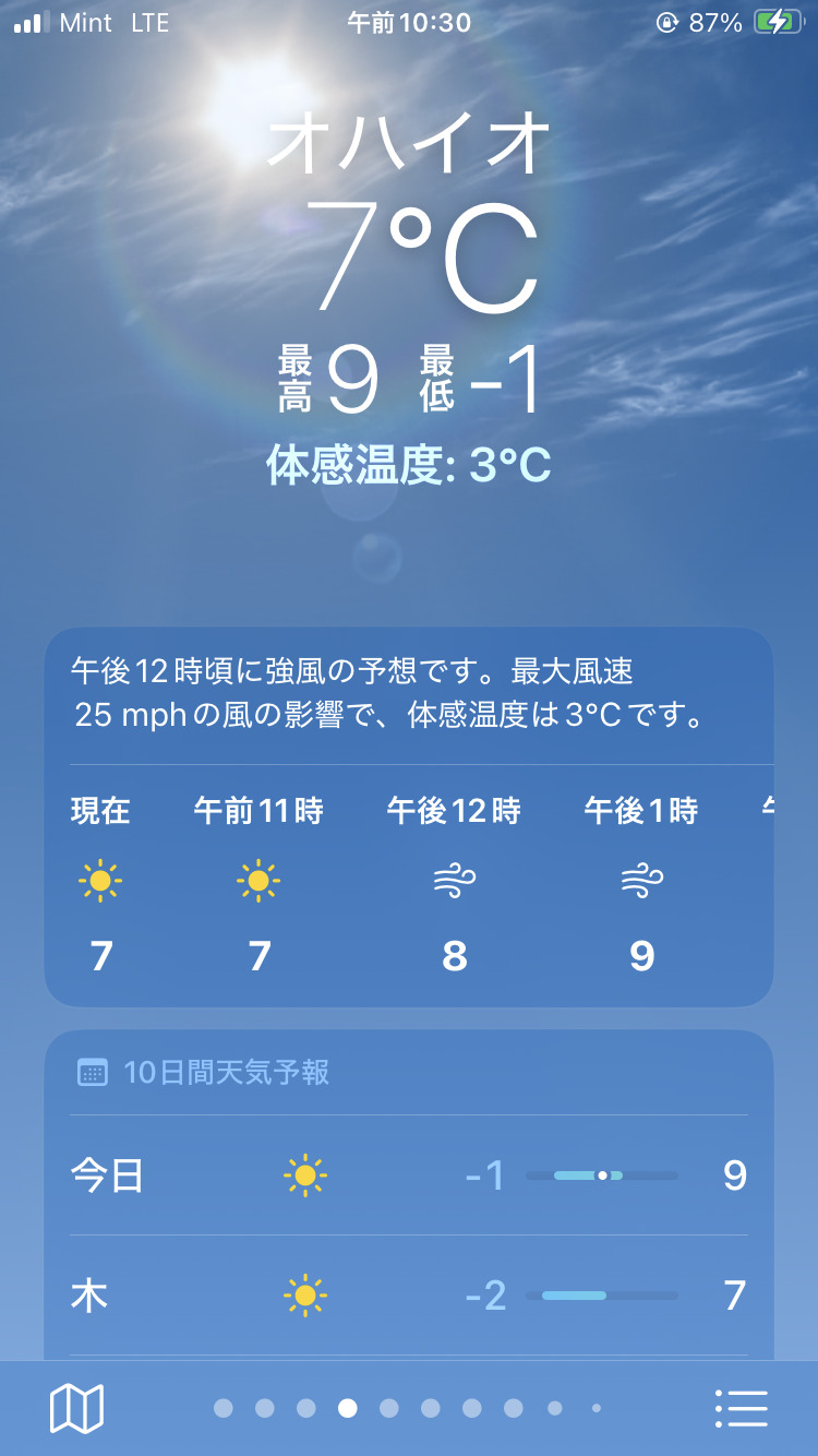 オハイオは晴れているけど寒い ⇩ 定年後にフロリダに移住する人が多いのがわかる