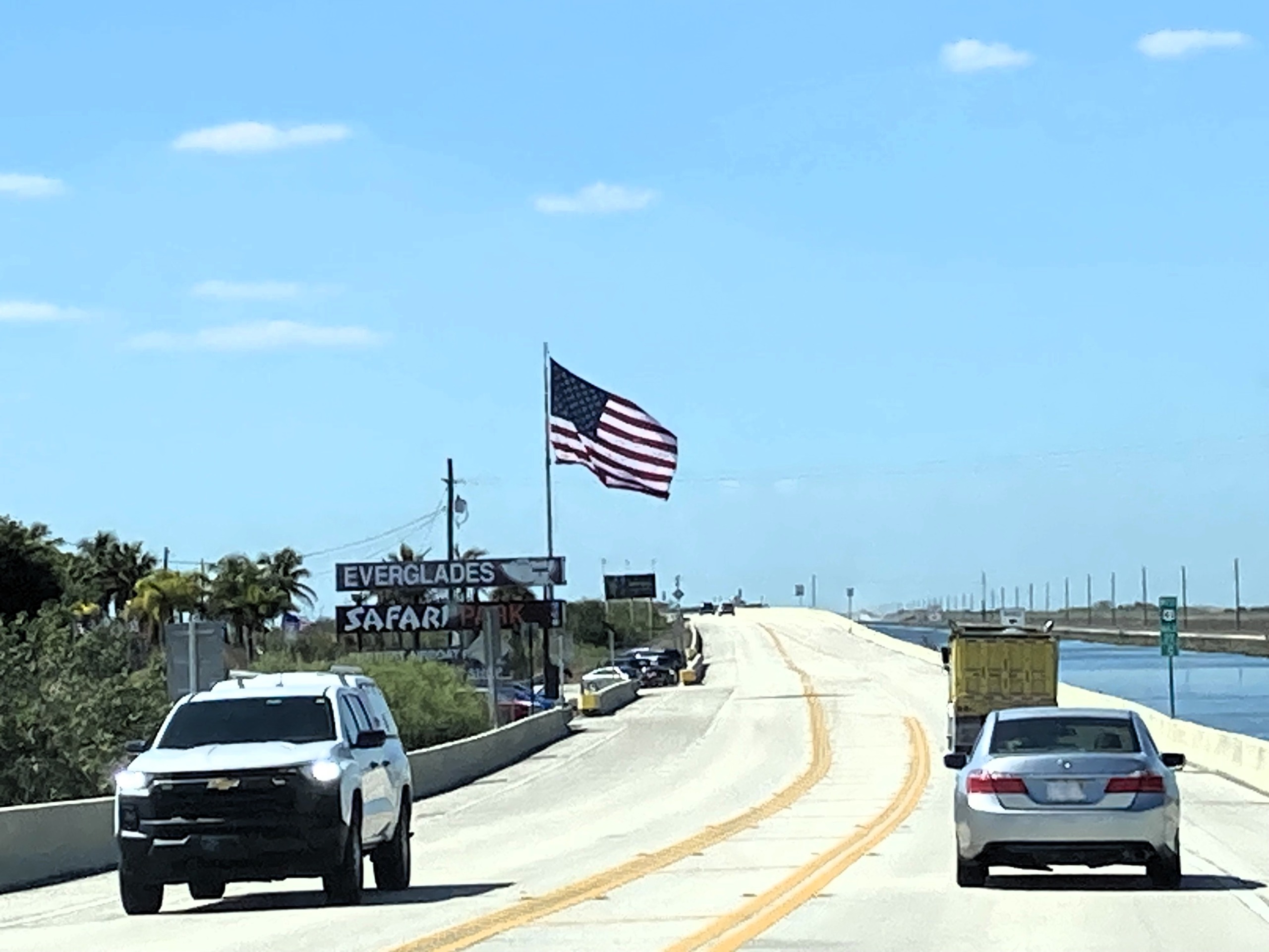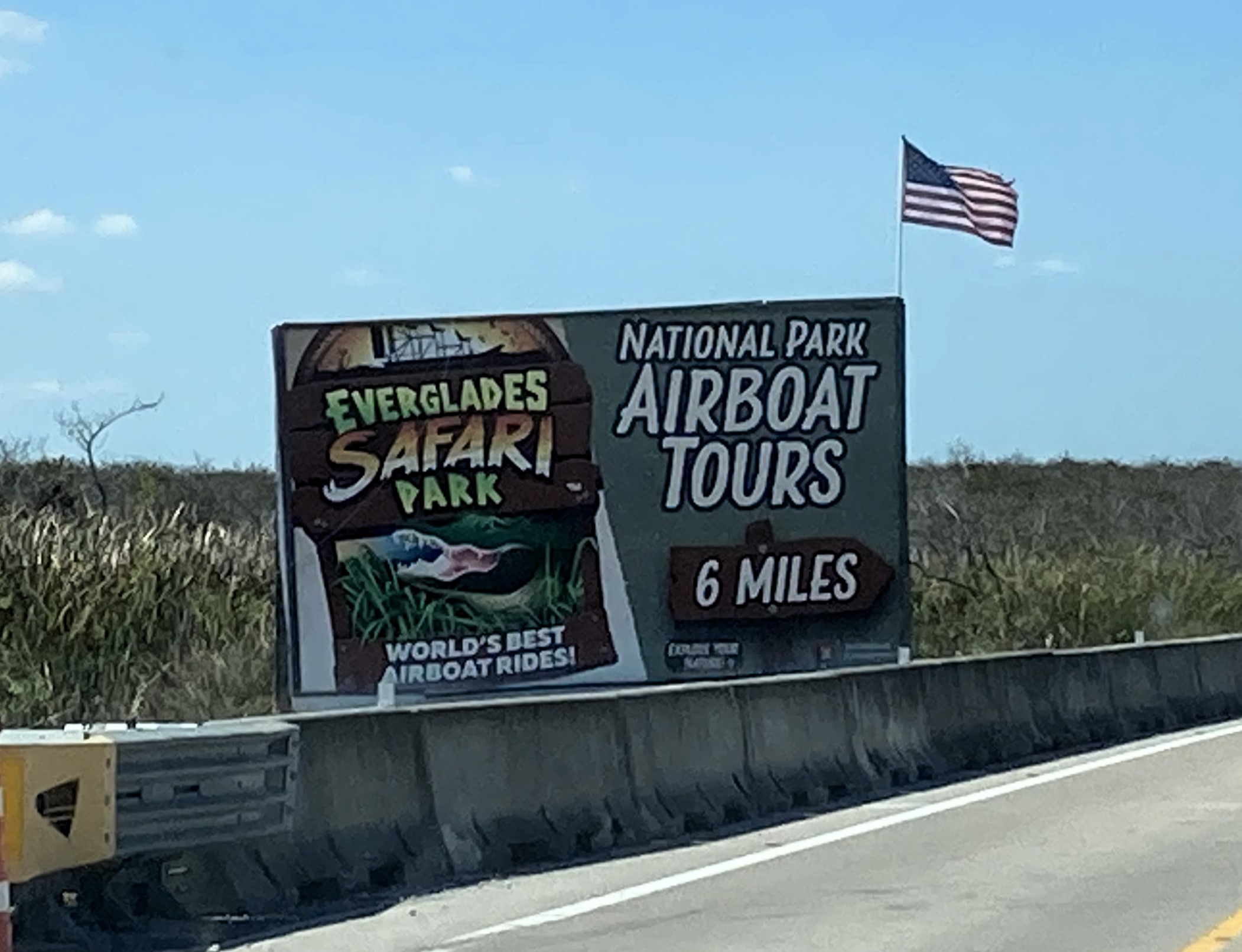 エバーグレーズ国立公園北側はマングローブ林のボートツアーの看板がたくさんある ⇩