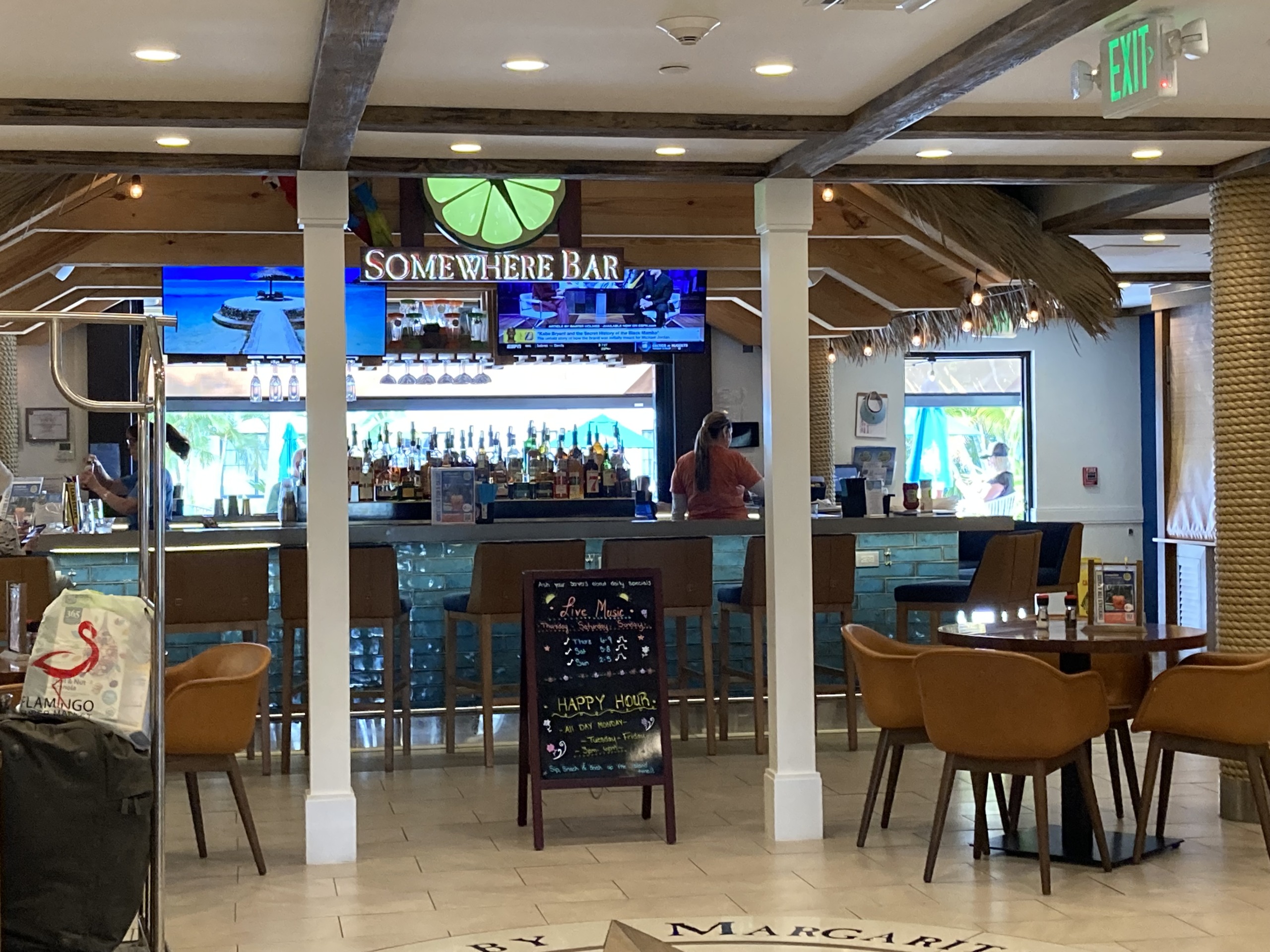 入って正面には ⇩ バー その向こうはプールがある