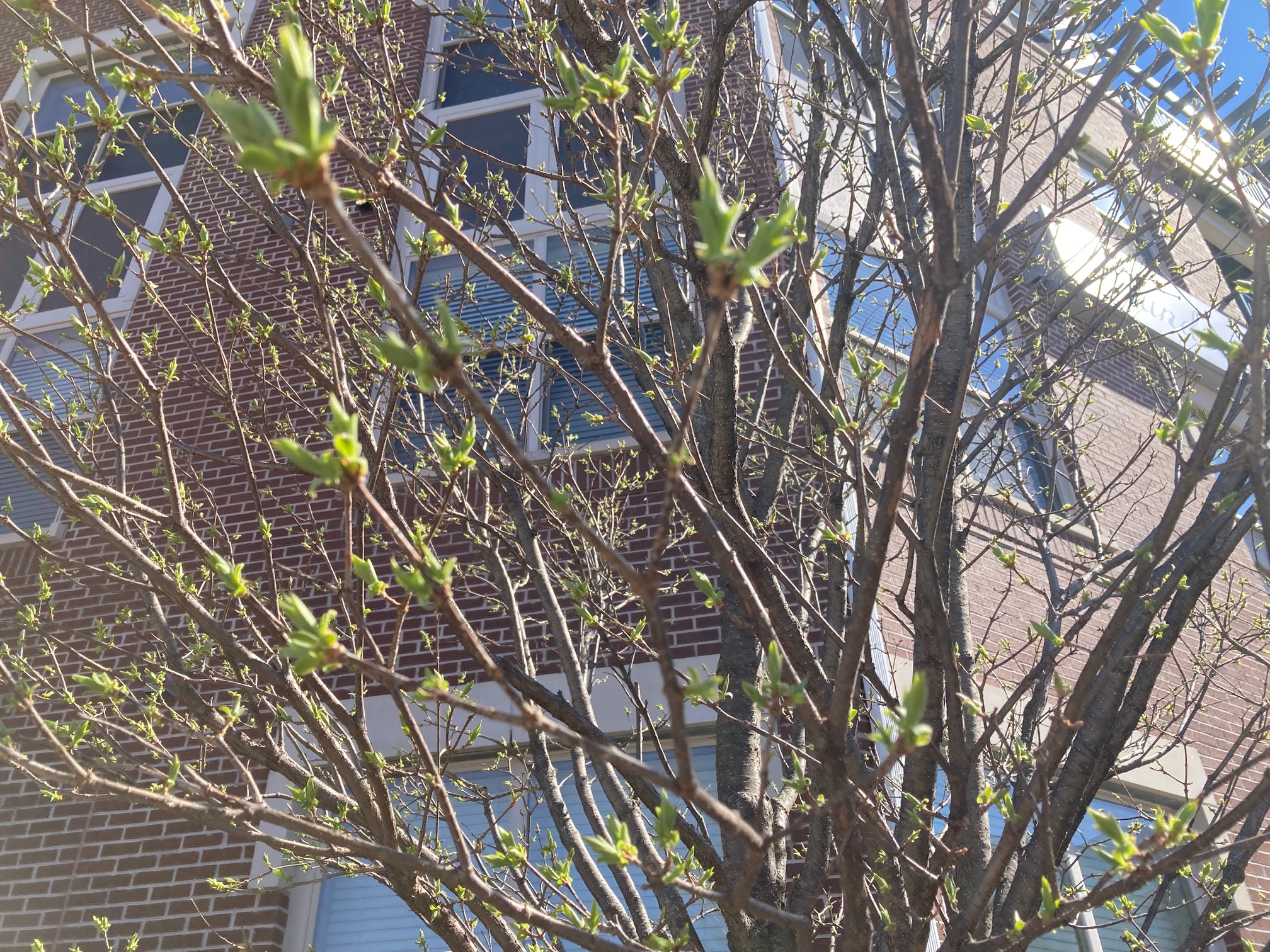 帰り道 ⇩ 何の木だか忘れたけれど、芽吹いてやっと春になってきた