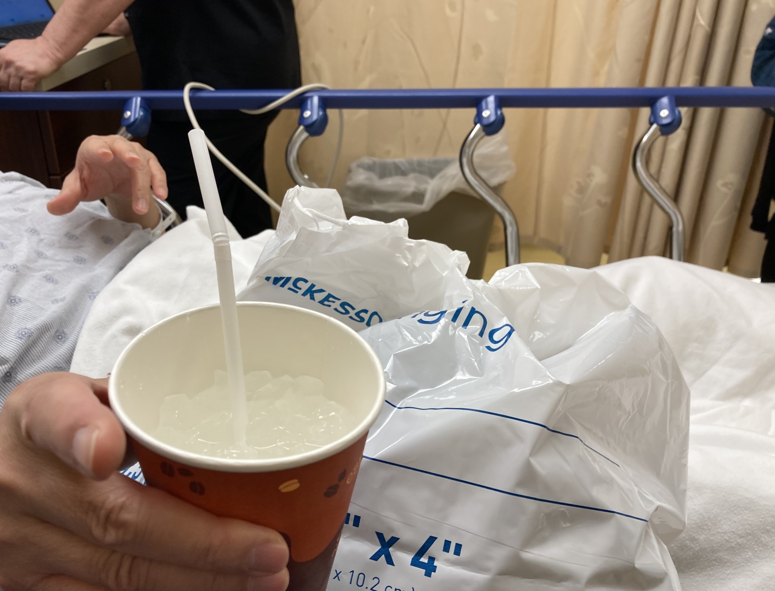 約30分で検査終了 ⇩ 3月初めのまだ寒いオハイオなのに氷入りのお水を渡された