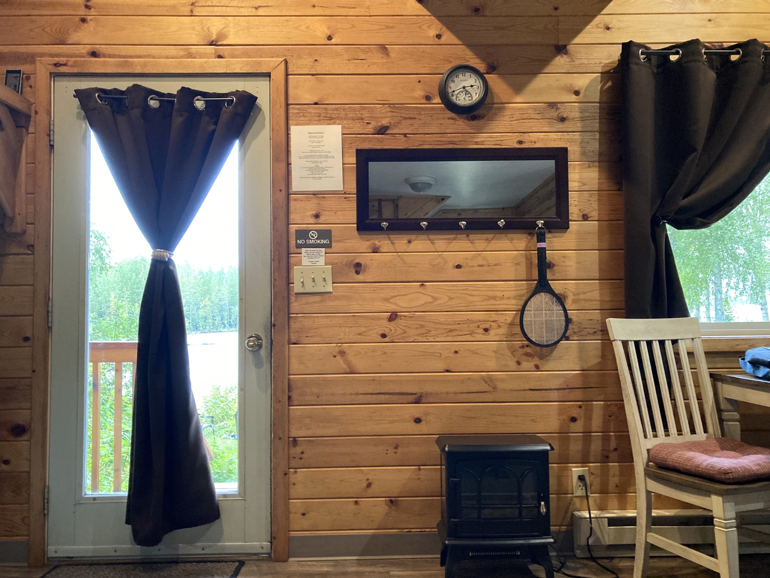ドア側 ⇩ 小さなストーブと電撃殺虫ラケット