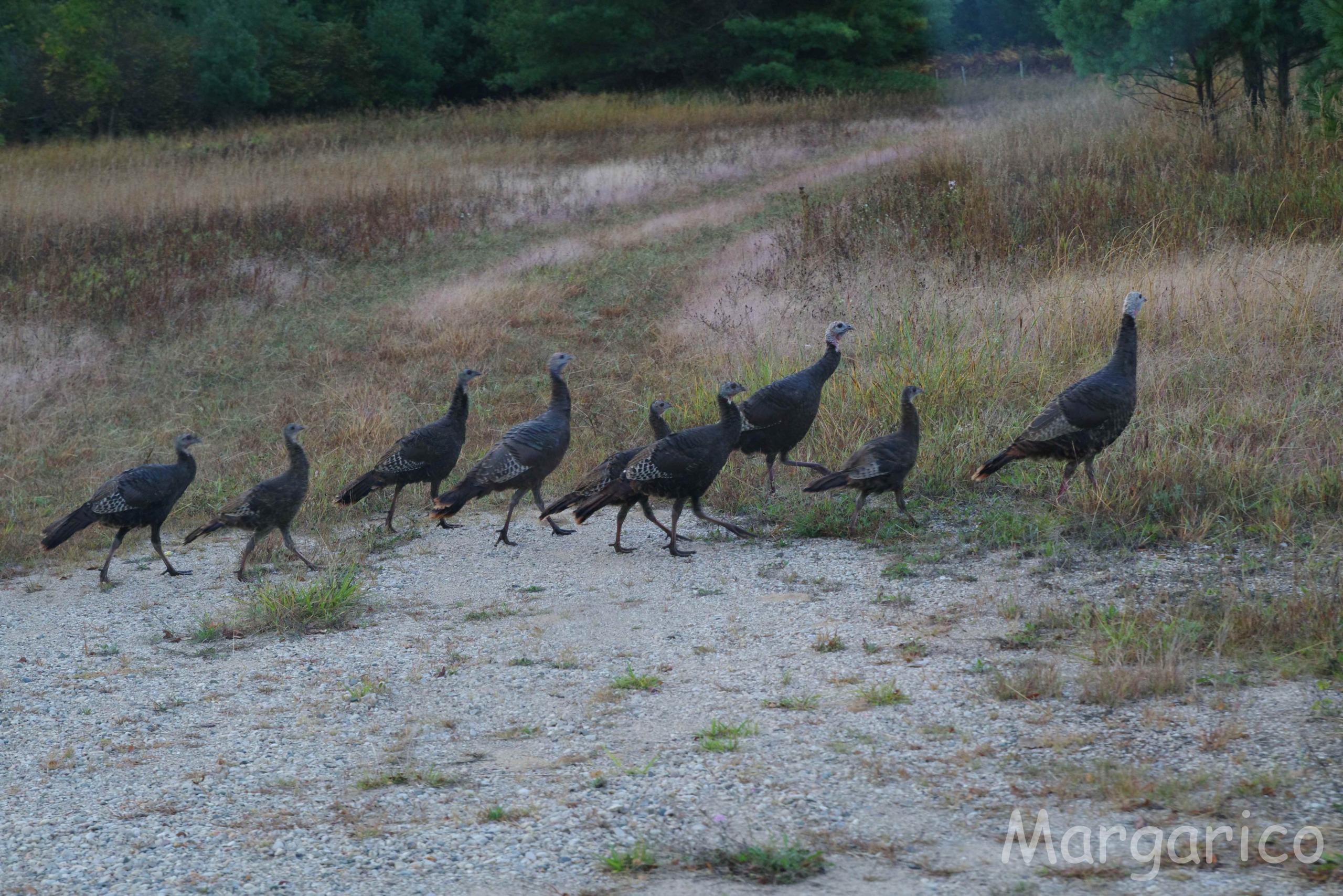ターキー達が道路を横切って森の方へ ⇩
