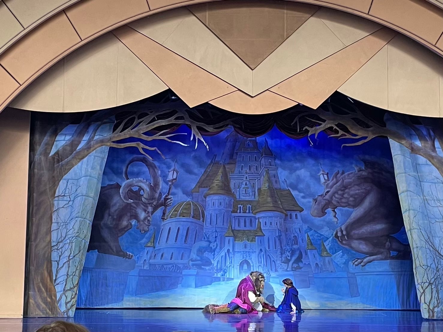 映像がメインの「アナと雪の女王」のステージ ⇩ 映像を見ながら歌う大会場のカラオケのよう