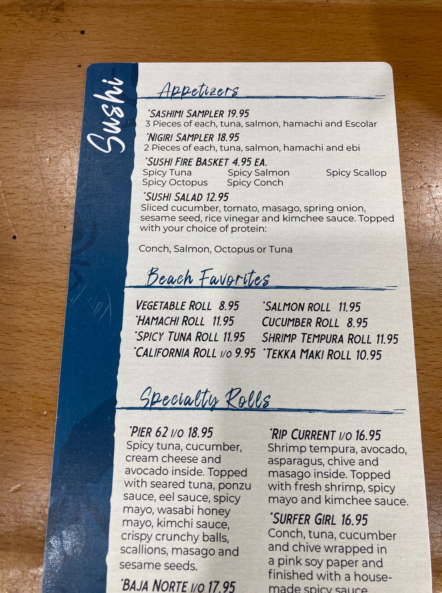 メニューにSAKEとかSUSHIがあった ⇩ 物凄く高いのでビックリ